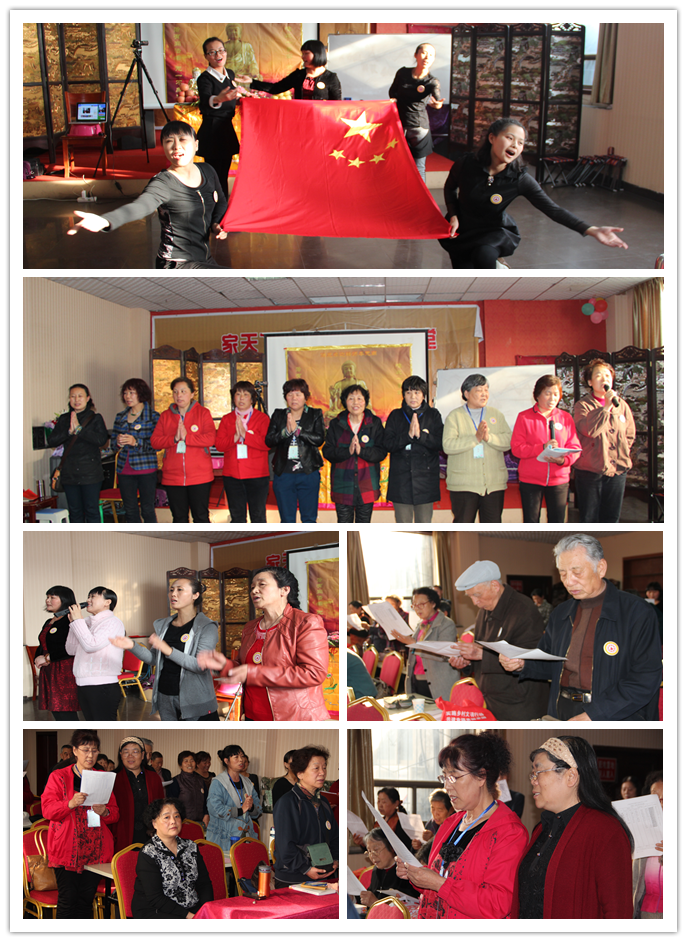 此次三天的法会殊胜圆满,师兄们以歌舞的形式歌叹佛德,供养诸佛菩萨,来自北京草堂精舍为人民服务小组的师兄们,为了缅怀新中国成立而牺牲的革命英烈们,为大家表演了舞蹈《绣红旗》,虽然师兄们的舞姿还不够专业,但是英雄前辈们的精神永存,法会现场响起热烈的掌声,革命先烈为国家为民族无私奉献的精神永远激励鼓舞着我们!丽丽师兄三拜恩师的歌声,也深深印在了大家的心头,法会在一遍遍热烈的掌声中圆满结束了,最后,与会师兄们一起齐声共唱: