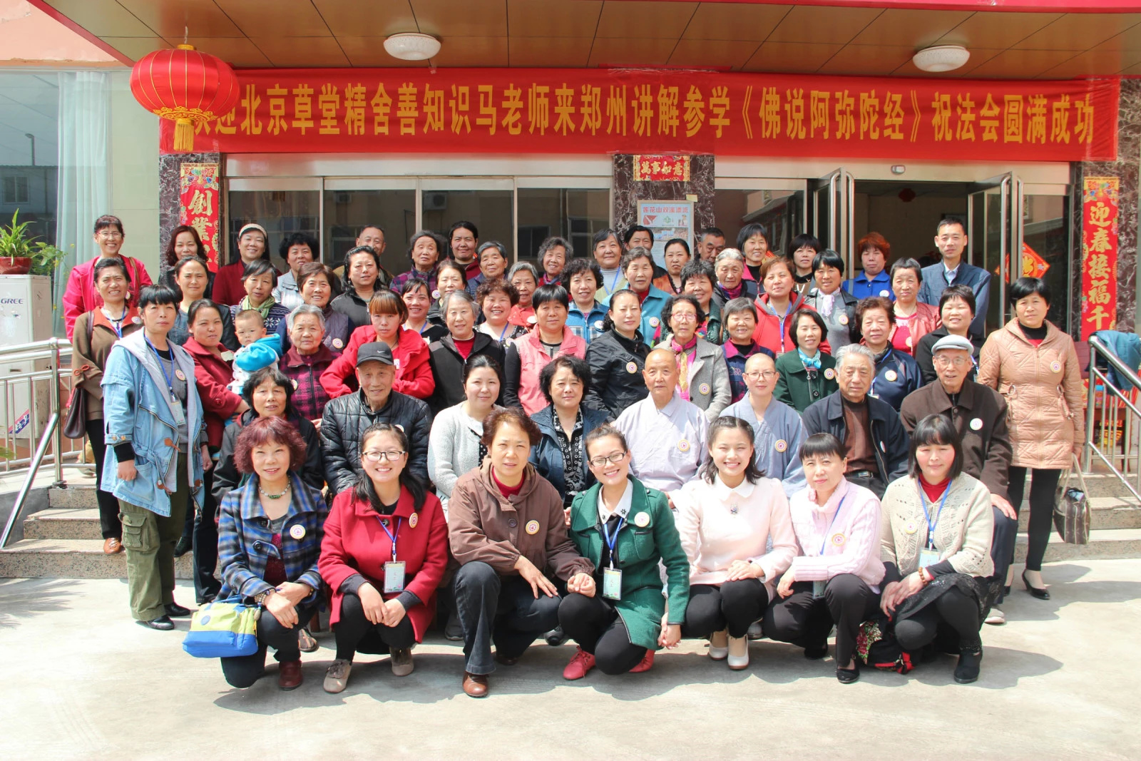 2015年4月18日,春意盎然,万物复苏的季节。慈蒙十方诸佛菩萨慈悲护念加持,这方众生法缘再次成熟。受河南吴老师及当地众多居士至诚邀请,北京草堂精舍马老师率领为人民服务小组一行来到这座中原绿城——郑州。它历史悠久是中华民族的发祥地之一,孕育了中华民族及其光辉灿烂的文化。这里的人民传承了中华民族的优良传统,勤劳、善良、纯朴,这里钟灵毓秀,人杰地灵,孕育了无数仁人志士。佛法的甘露法语普济滋润着中原大地。万丈光芒照十方,法音传遍到南疆。众感佛至齐盼望,大乘经典作导航。这是马老师一年来在全国各地不同的寺院、道场,第十二次开讲《佛说阿弥陀经》。