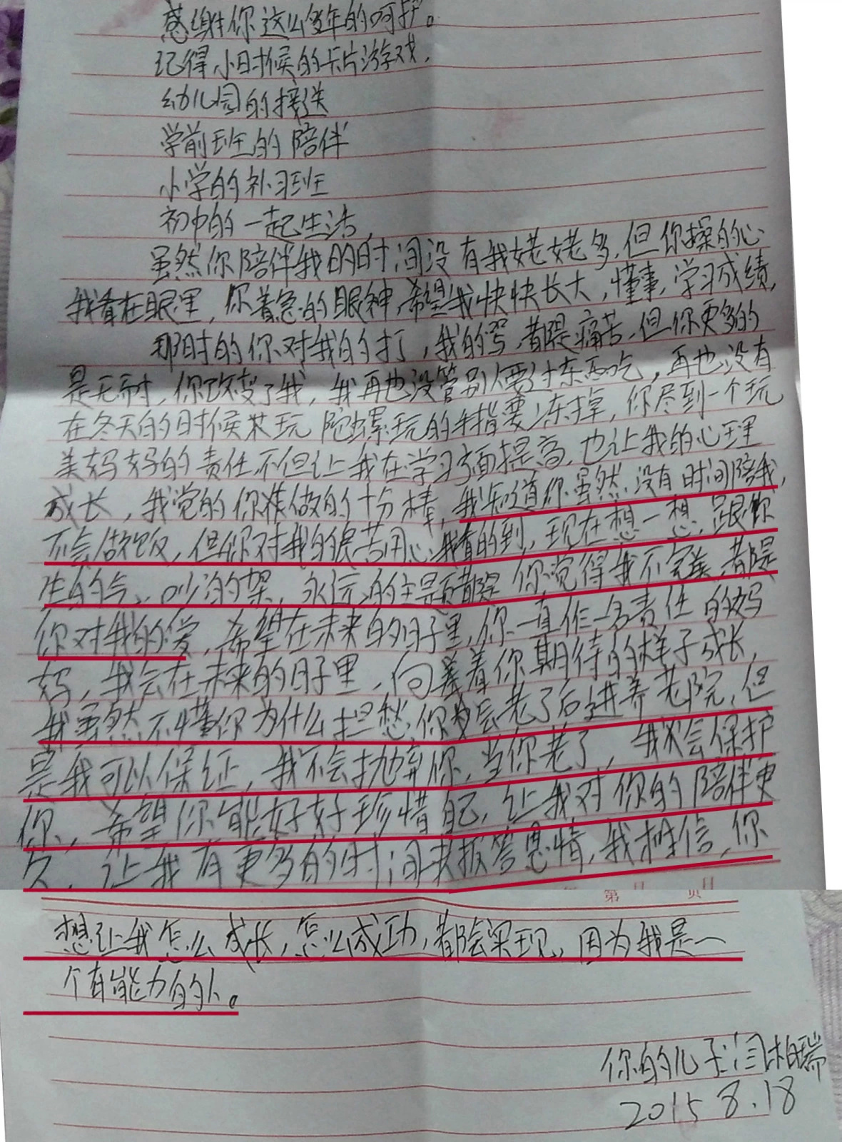 千言万语说不完的感动,万语千言说不出的恩情,还有很多信件就不一一列举了,以下小片段请慢慢品味!