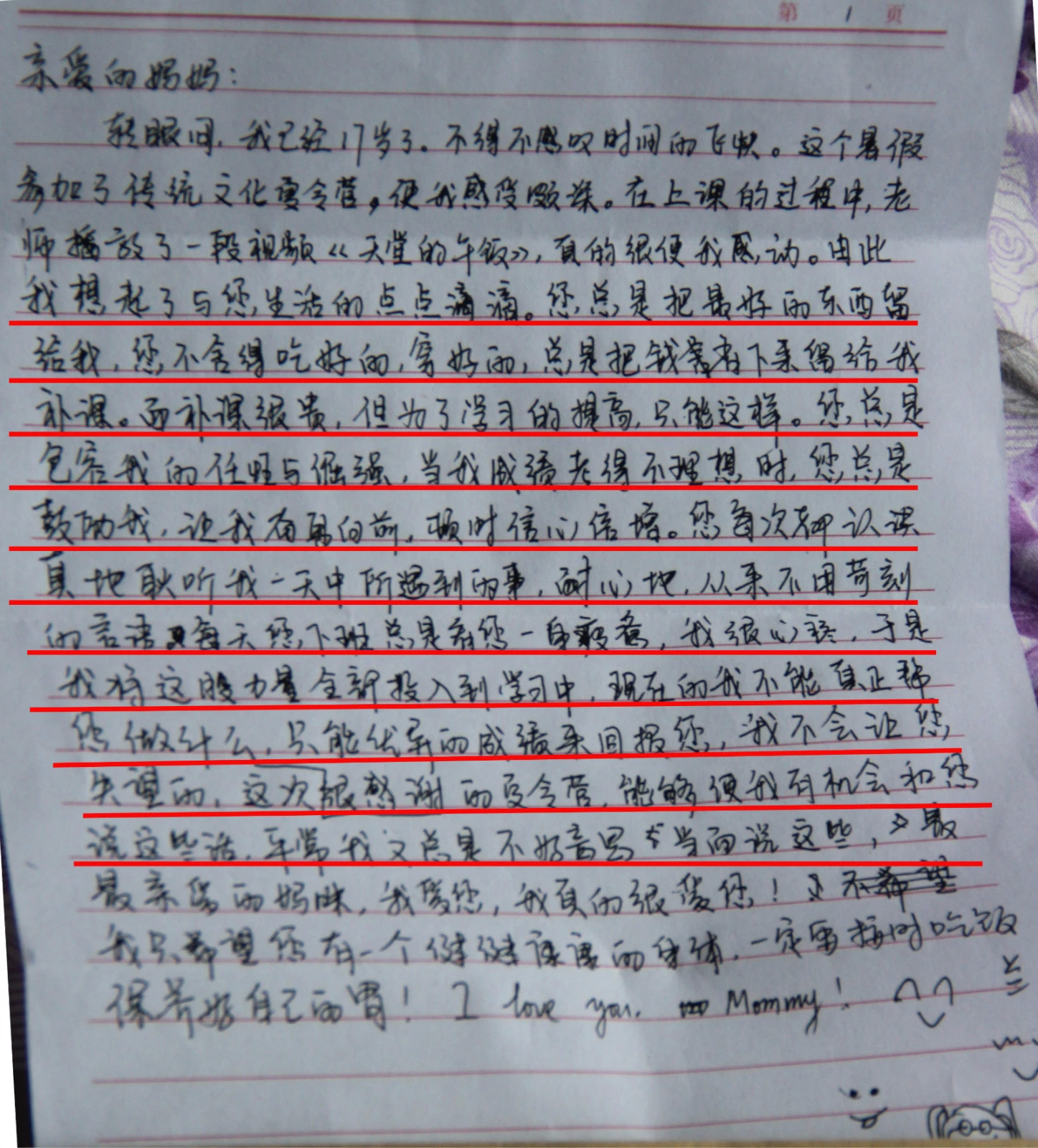 通常我们看不见妈妈的不容易,但是通过这份信,相信以后的母子关系中不会有埋怨,因为孩子懂得了妈妈这份深刻的爱!