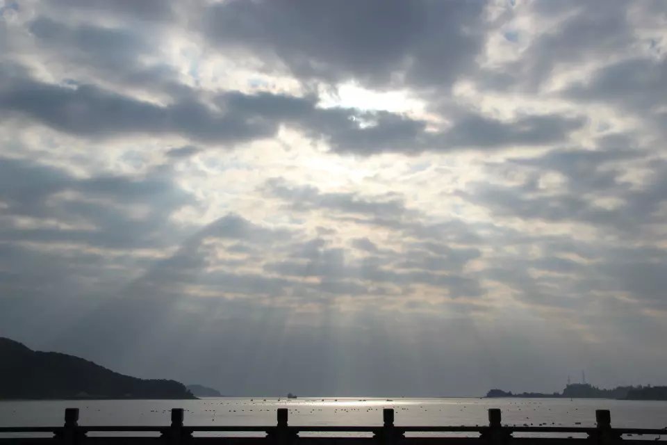 在永宁寺参学交流后,应琯头镇福斗寺众位居士的邀请,我们又坐车来到了这个东海之滨的海岛上。一路上,绿树郁郁葱葱,山连着海,海连着天,天空乌云浓厚,海风拂面,好不惬意。当我们一行进入寺院的时候,太阳穿透了浓云,绽放出来出来金色的光芒。