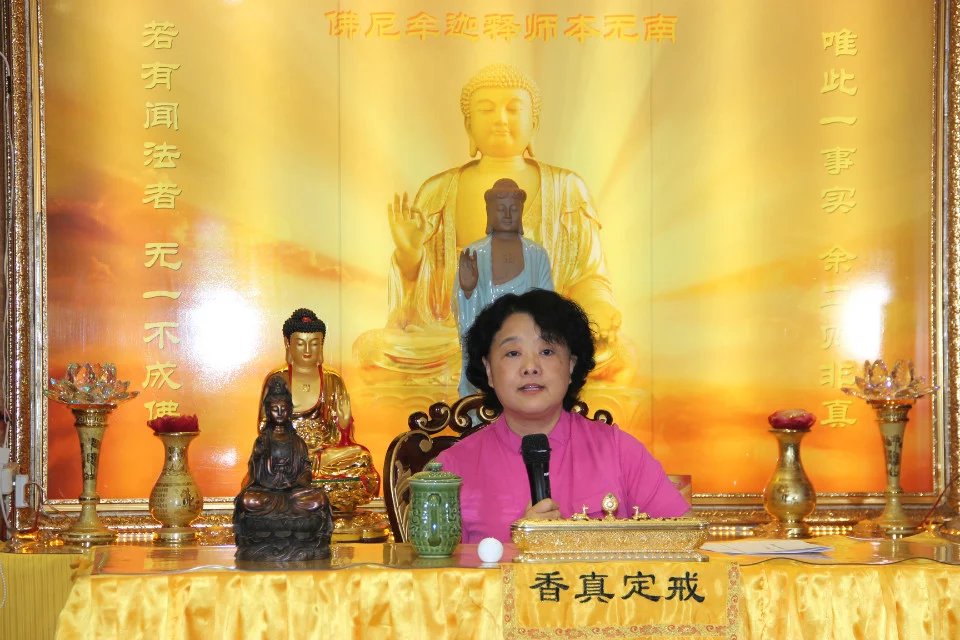 此次法会,还请到了辽宁朝阳慈善协会的梁秀华老师。梁老师的信念是“生命不息,慈善不止”。梁老师不只在中国各地做慈善,还把慈善事业做到国外。梁老师说她不会讲经,她就是和大家唠唠嗑,唠唠她走过的人生路。从她身上,我们看到了一个佛法的践行者“不为自己求安乐,但愿众生得离苦”的高尚情操。从她身上也让我们明白了一个道理,只要你是为了利益别人,做什么都能成的真理真实不虚。